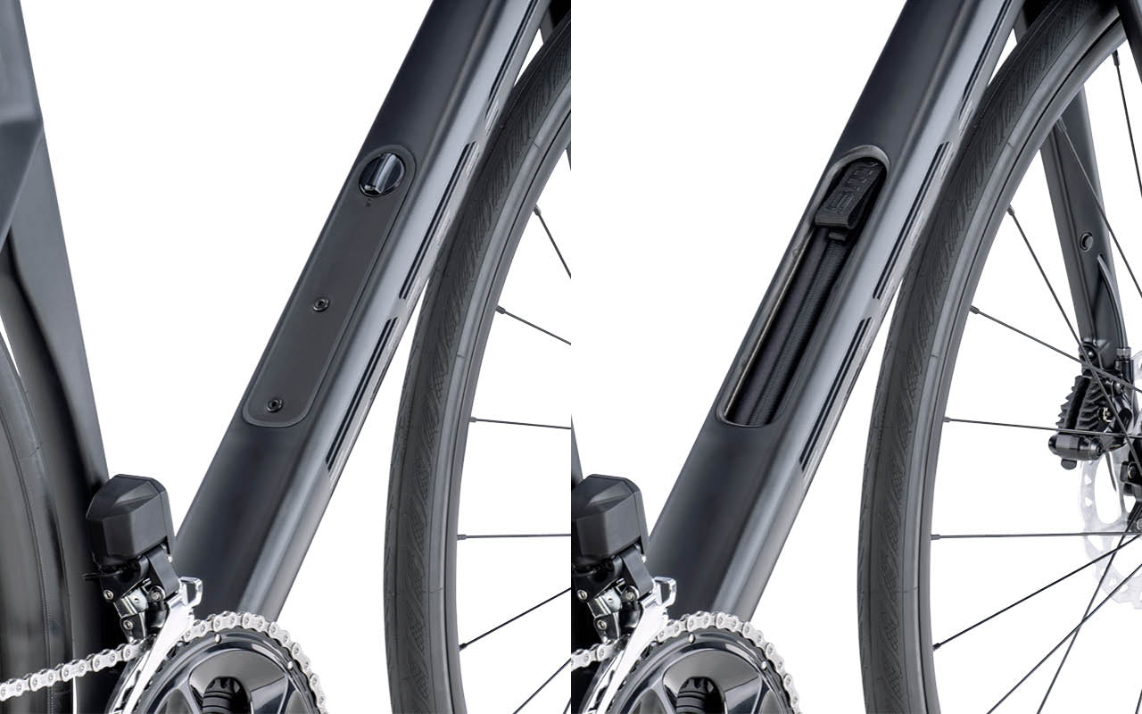 Roadmachine Carbon with Tuned Compliance Concept Endurance | ICS Technology Stealth Cable Routing | Fender Mounts | Integrated Downtube Storage | Stealth Dropout Design | 12 x 142mm Thru-Axle